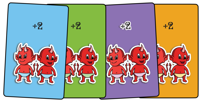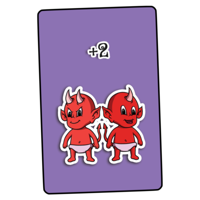 The next player will have to draw two cards unless they have another Evil Twins card to discard. If so, the following player will have to draw four cards unless they have another Evil Twins card to discard. This continues and stacks up.