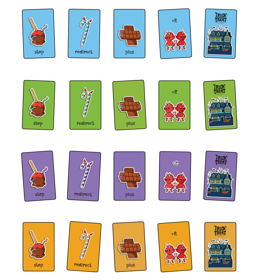 Similar to a regular Trick-or-Treat card but also allows the discarding player to choose the background color before starting to discard more cards.